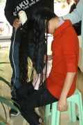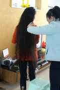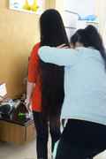 She is only 13 years old but her hair is thick. This video features her hair brush and styling. Note: the camera was held by hand.